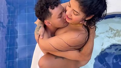 I find my sex-positive stepsister bored by the pool and I relieve her boredom with a crazy fuck.